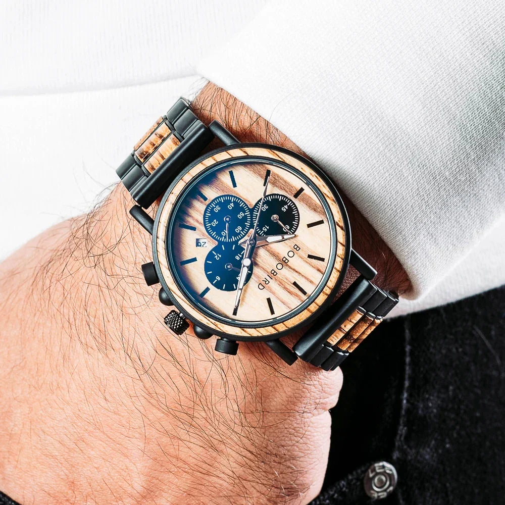 Descubra o equilíbrio perfeito entre luxo moderno e elegância natural com o BOBO BIRD Wooden Watch™ — um relógio masculino único, artesanalmente fabricado com madeiras nobres selecionadas. Ideal para homens exigentes, que valorizam autenticidade e sofisticação.