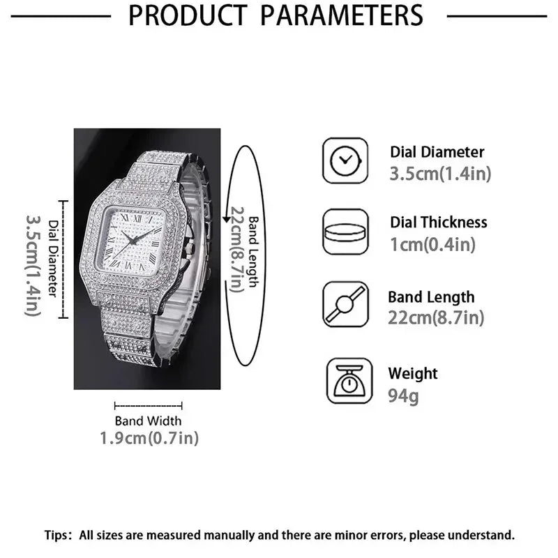Transforme cada minuto em uma declaração de estilo com o Luxury Diamond Watch — o relógio unissex que une sofisticação, elegância e presença em um design simplesmente irresistível.